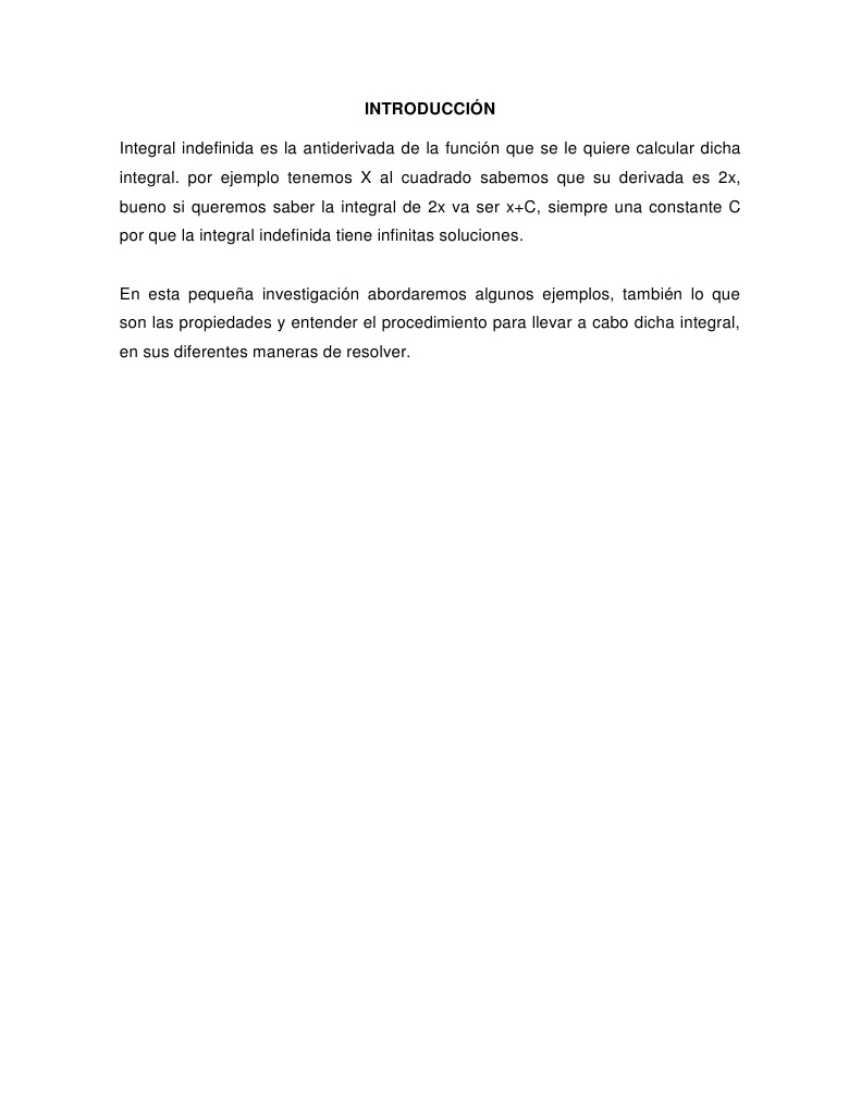 En esta pequea investigacin abordaremos algunos ejemplos, tambin lo que son las propiedades y entender el procedimiento para llevar a cabo dicha integral, en sus diferentes maneras de resolver.