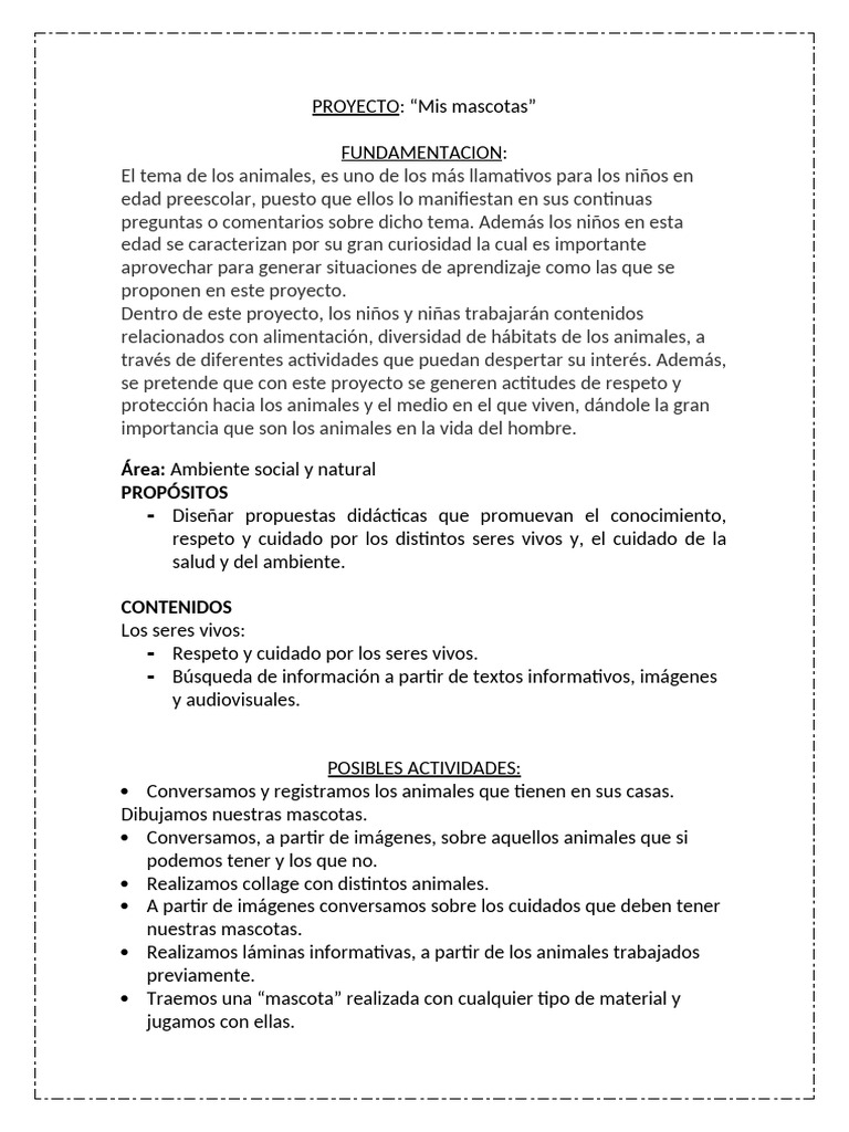 PROYECTO: “Mis mascotas”
