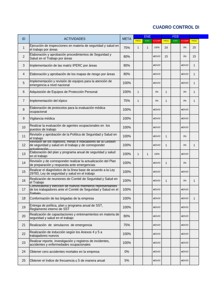 9 Vigilancia médica 100% #DIV/0! #DIV/0!