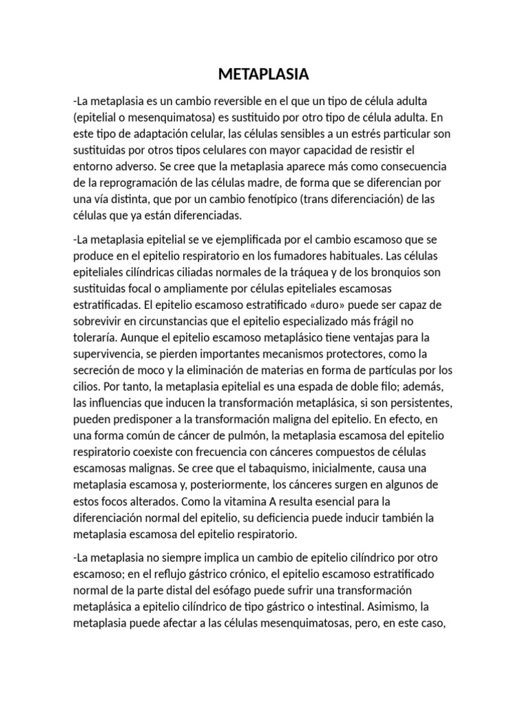-La metaplasia es un cambio reversible en el que un tipo de célula adulta