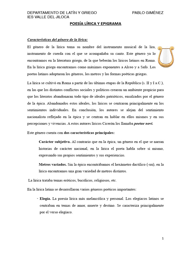 POESÍA LÍRICA Y EPIGRAMA