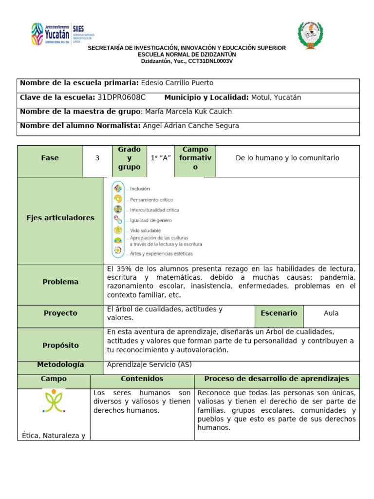 Nombre del alumno Normalista: Angel Adrian Canche Segura