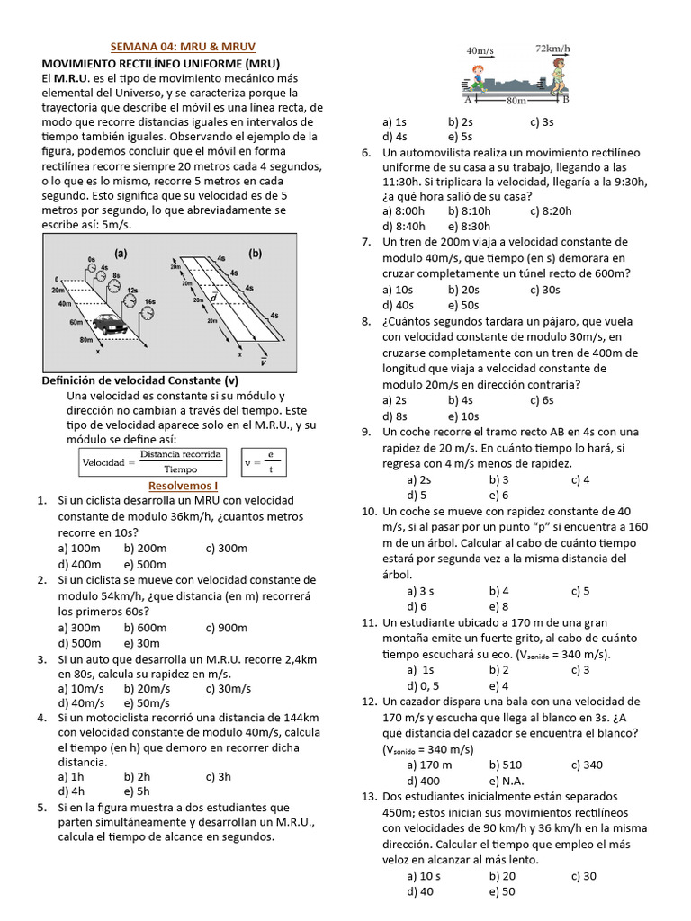 1. Si un ciclista desarrolla un MRU con velocidad d) 5 e) 6