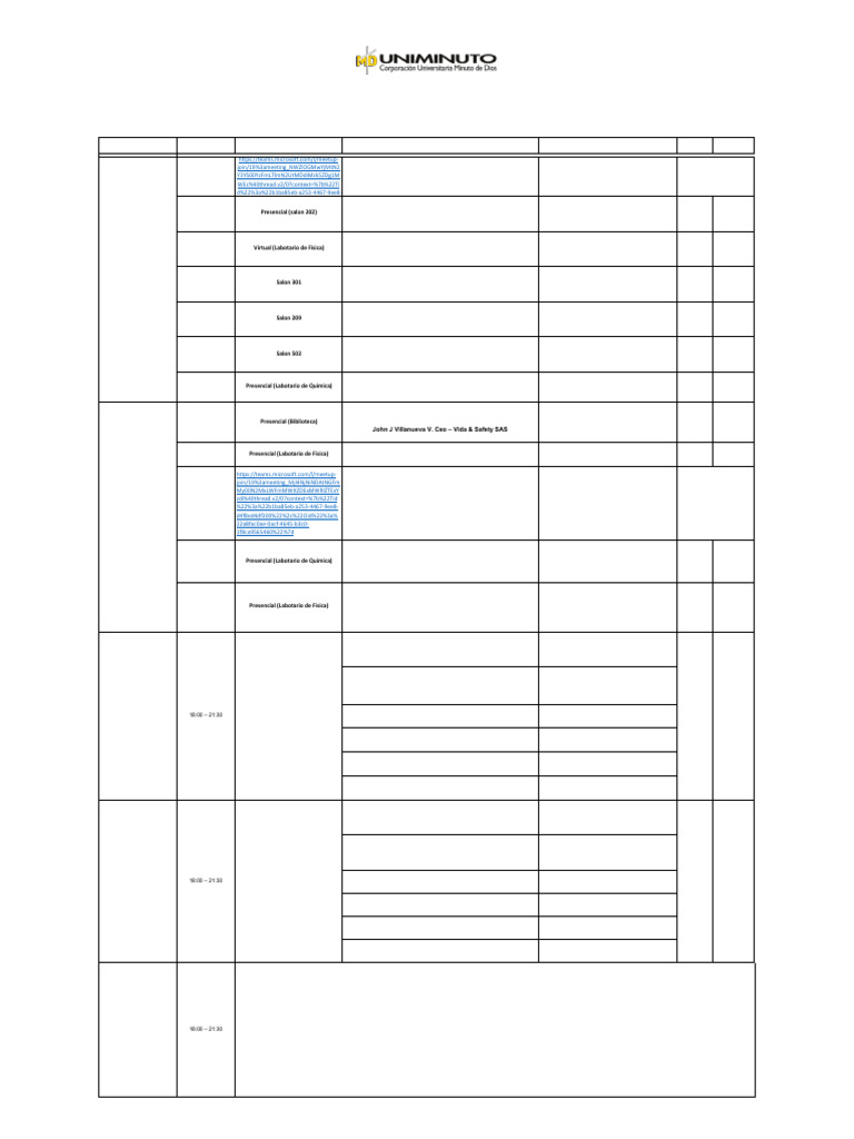 19:20 - 20:15 Presencial (Labotario de Quimica)