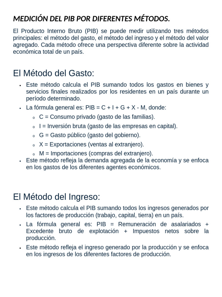 El Producto Interno Bruto (PIB) se puede medir utilizando tres métodos
