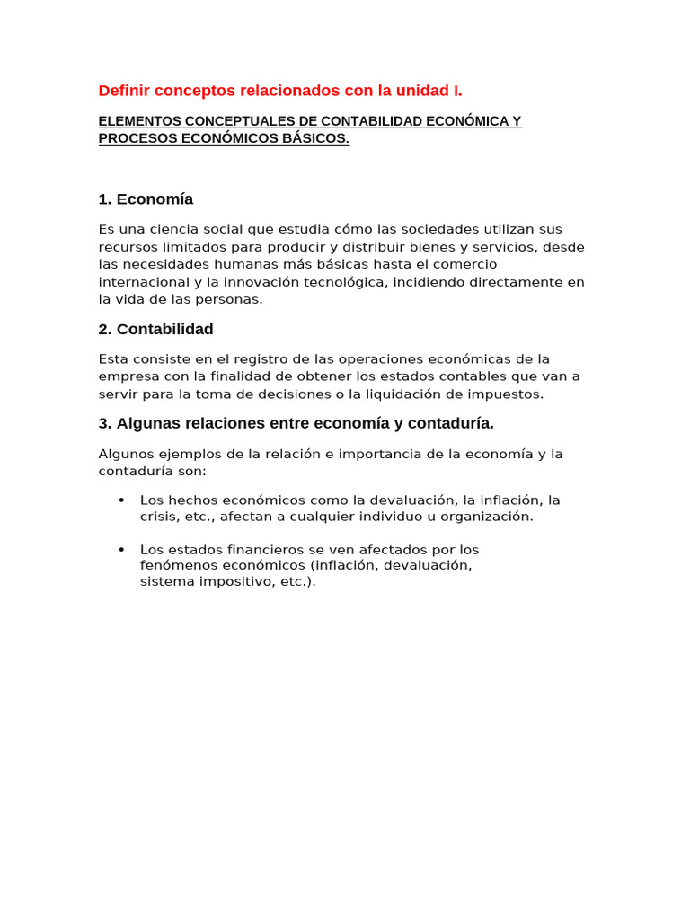 Definir conceptos relacionados con la unidad I.