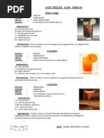 ● Pisco Sour: Mezcla de pisco, jugo de limón, jarabe de goma, clara de huevo y