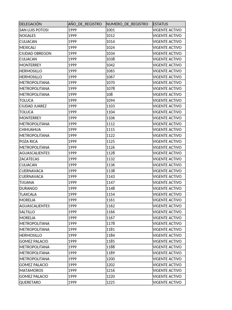DELEGACIÓN AÑO_DE_REGISTRO NUMERO_DE_REGISTRO ESTATUS