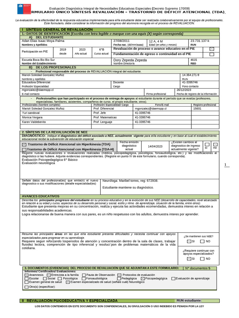 FORMULARIO ÚNICO SÍNTESIS REVALUACIÓN – TRASTORNO DE DÉFICIT ATENCIONAL (TDA)