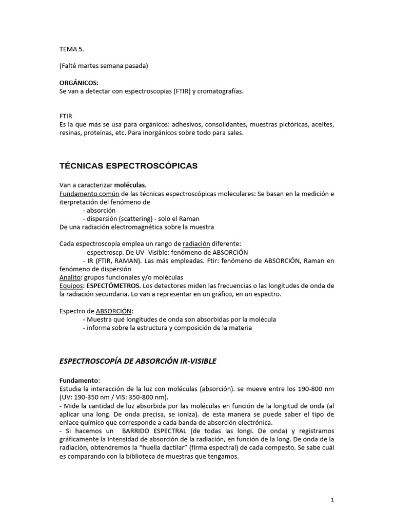 - IR (FTIR, RAMAN). Las más empleadas. Ftir: fenómeno de ABSORCIÓN, Raman en