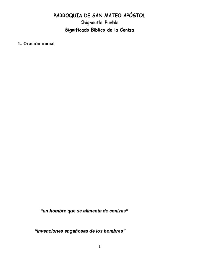 la ceniza tiene su verdadero sentido, cuando orando se reconoce nada ante el
