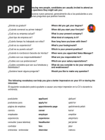 pregunta de tu entrevista de trabajo en inglés intentando rellenar tus espacios en blanco, de tal forma que des la impresión de