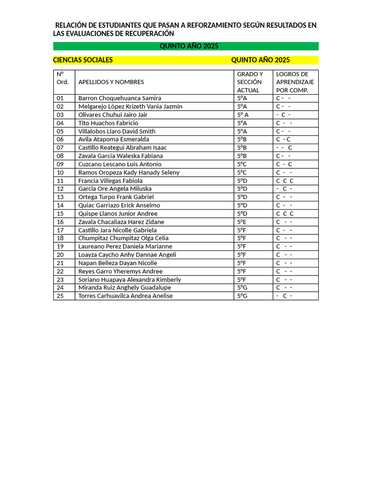 QUINTO AÑO 2025