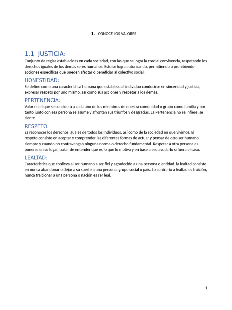 demás. En este sentido, se consideran valores universales, la honestidad, la
