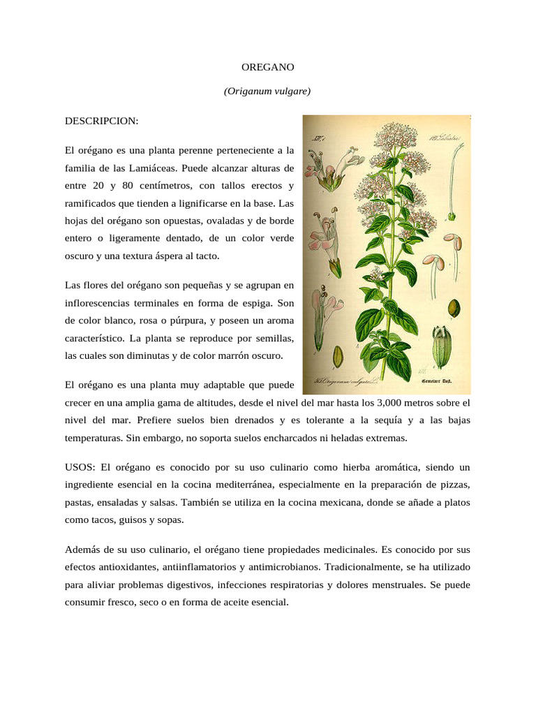 USOS: El orégano es conocido por su uso culinario como hierba aromática, siendo un