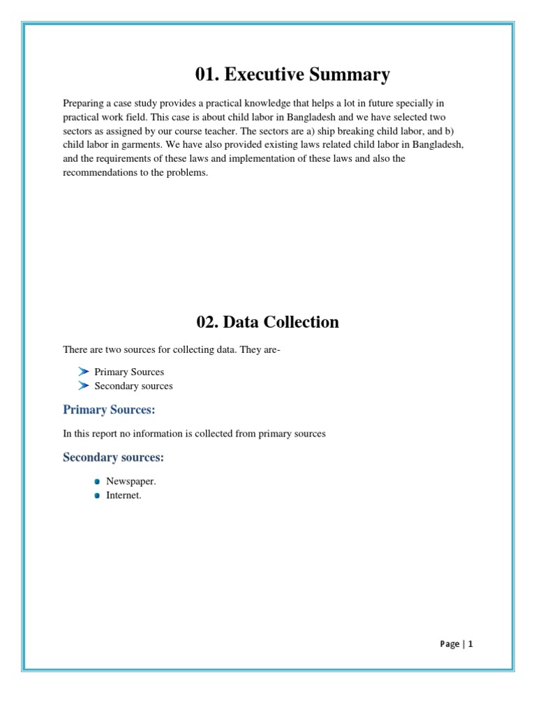 Preparing a case study provides a practical knowledge that helps a lot in future specially in practical work field. This case is about child labor in Bangladesh and we have selected two sectors as assigned by our course teacher. The sectors are a) ship breaking child labor, and b) child labor in garments. We have also provided existing laws related child labor in Bangladesh, and the requirements of these laws and implementation of these laws and also the recommendations to the problems.