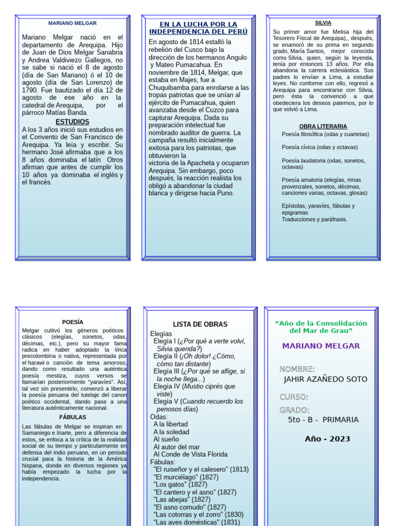 Arequipa. Ya leía y escribir. Su exitosa para los patriotas, que Poesía cívica (odas y octavas)