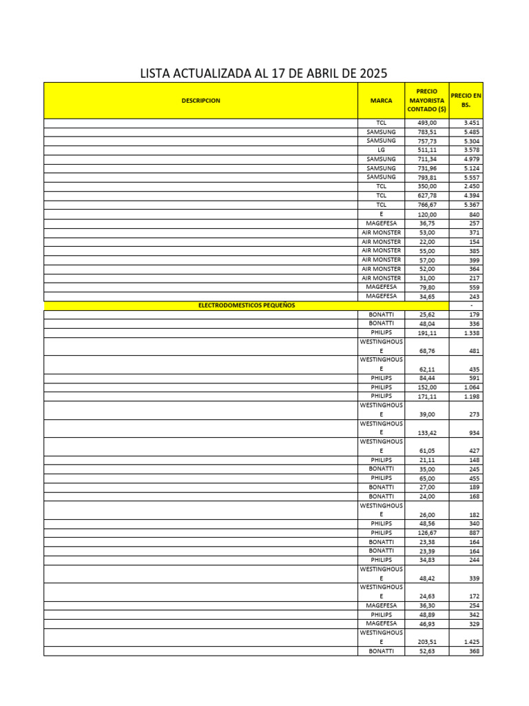 LISTA ACTUALIZADA AL 17 DE ABRIL DE 2025