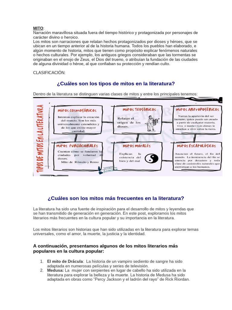 ¿Cuáles son los mitos más frecuentes en la literatura?