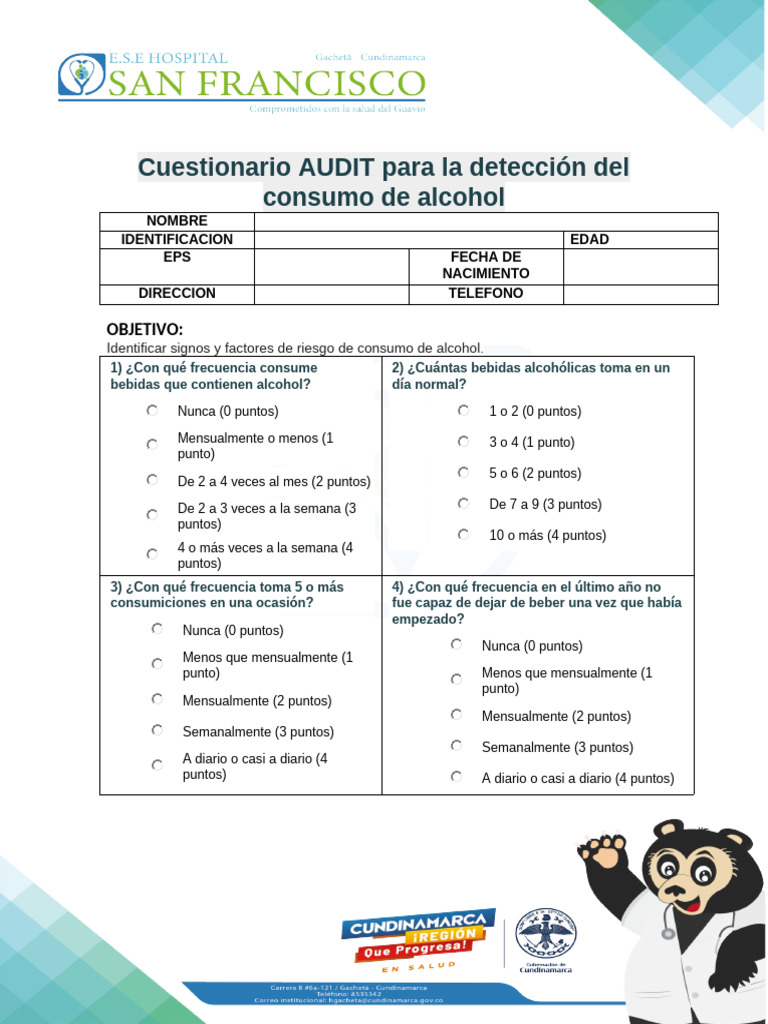 Cuestionario AUDIT para la detección del
