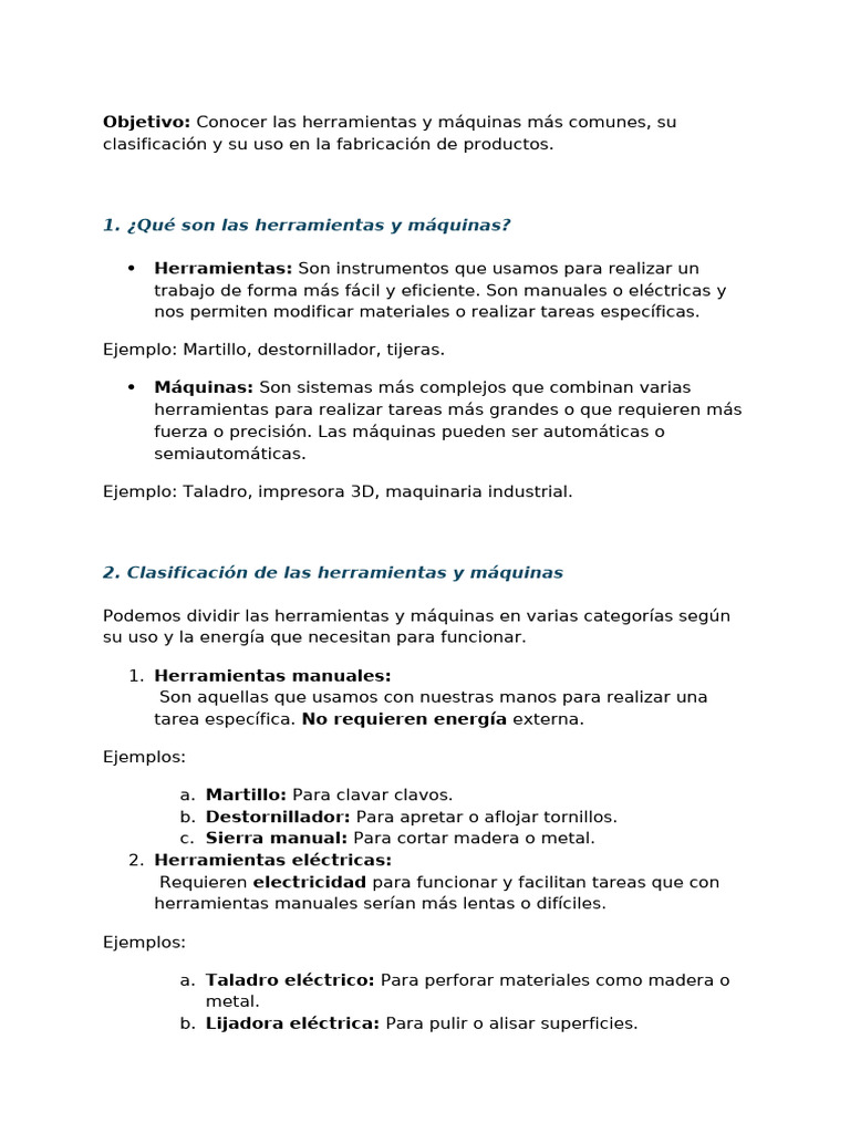 Objetivo: Conocer las herramientas y máquinas más comunes, su