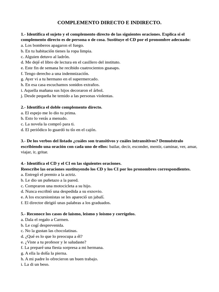 1.- Identifica el sujeto y el complemento directo de las siguientes oraciones. Explica si el