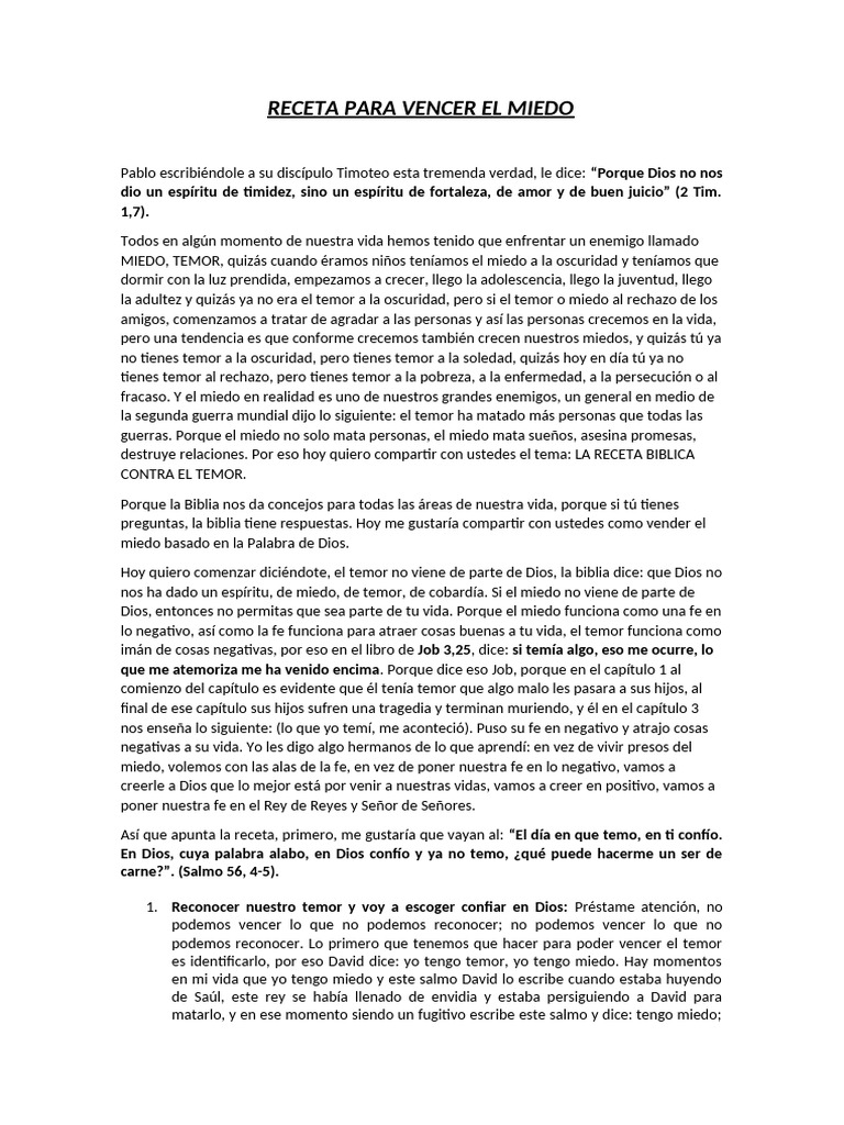 temor, yo tengo miedo. Lo primero que tenemos que hacer si queremos vencer el