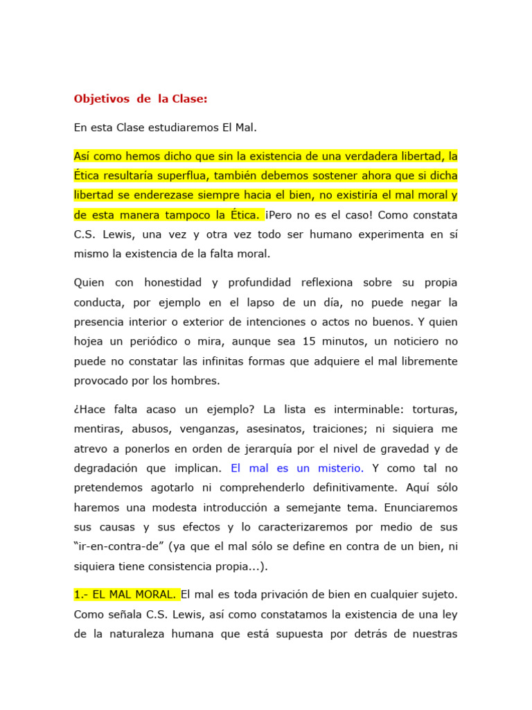 En esta Clase estudiaremos El Mal.