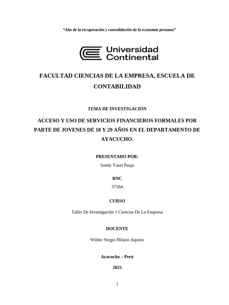 financieros formales, especialmente en regiones fuera de Lima. En Ayacucho, por ejemplo,