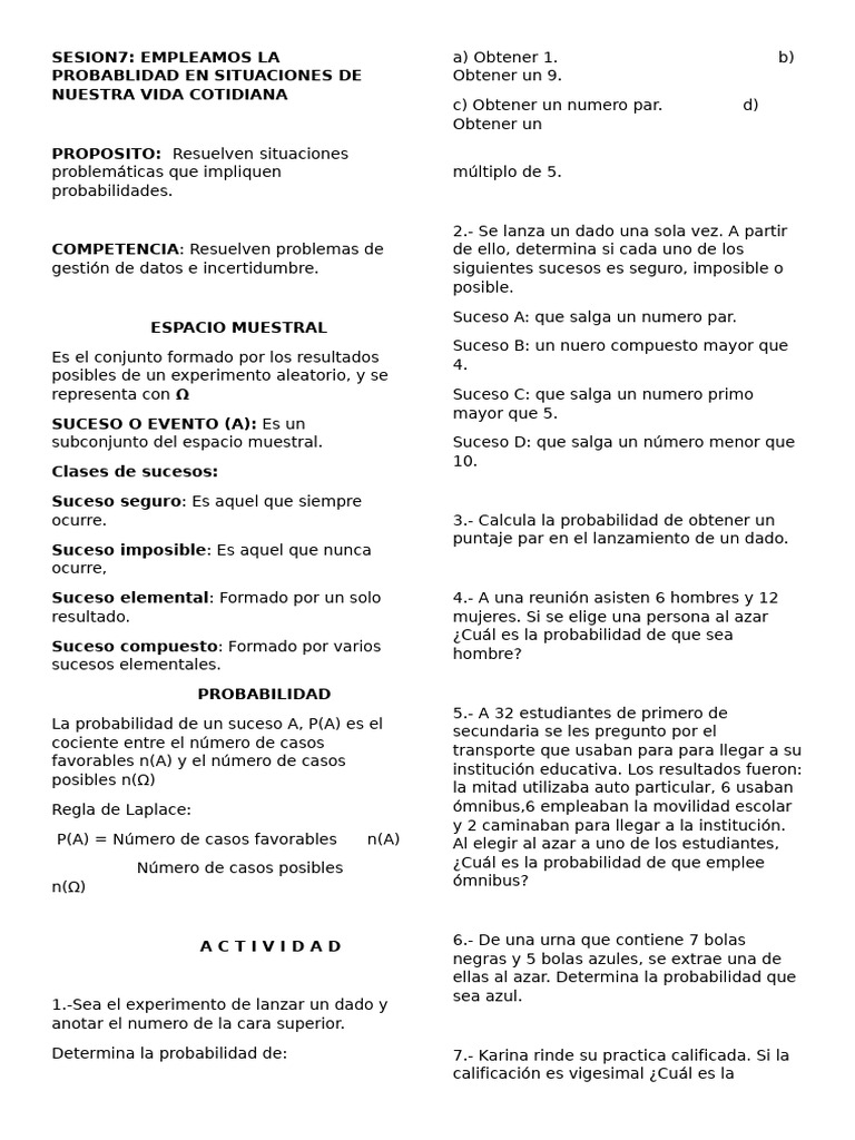 ACTIVIDAD 6.- De una urna que contiene 7 bolas