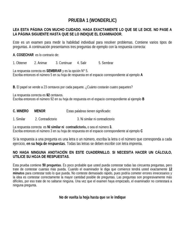 PRUEBA 1 (WONDERLIC)