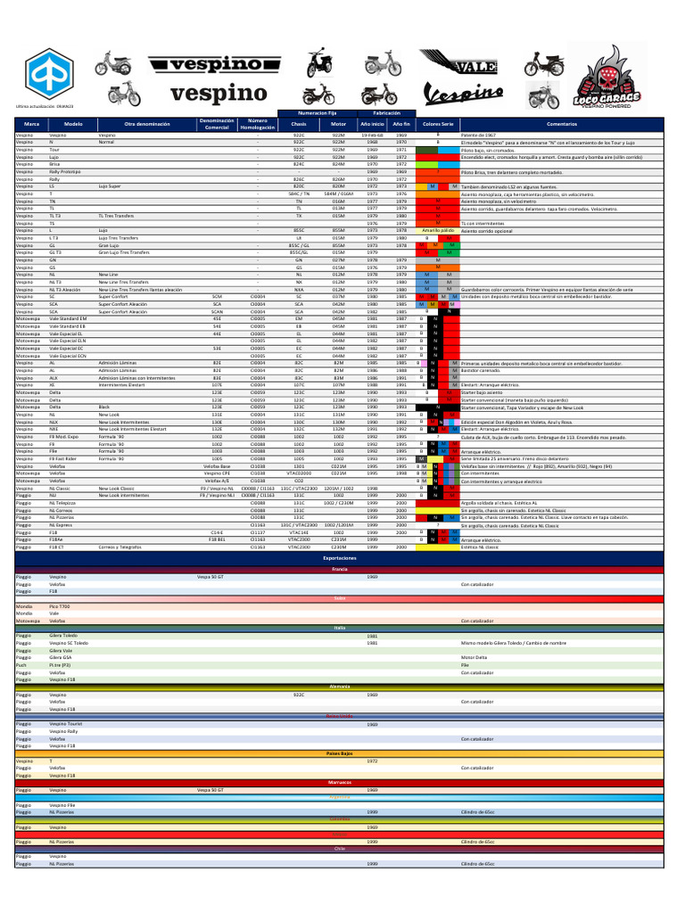 Vespino GL Gran Lujo - 855C / GL 855M 1973 1978 M M M