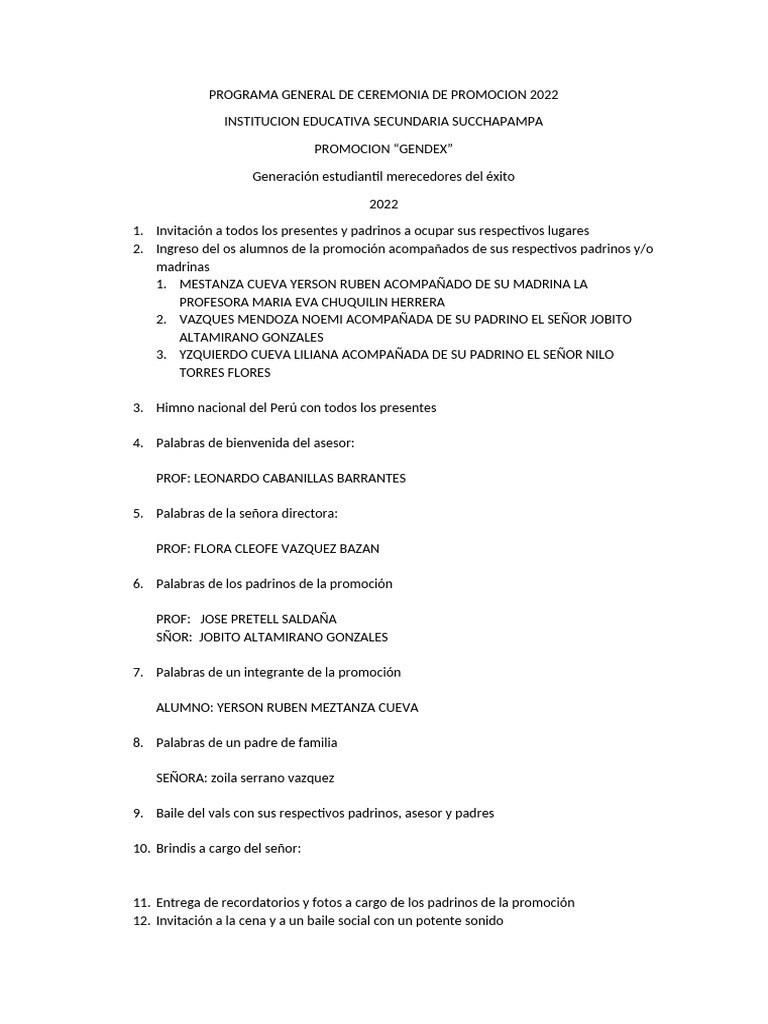 PROGRAMA GENERAL DE CEREMONIA DE PROMOCION 2022