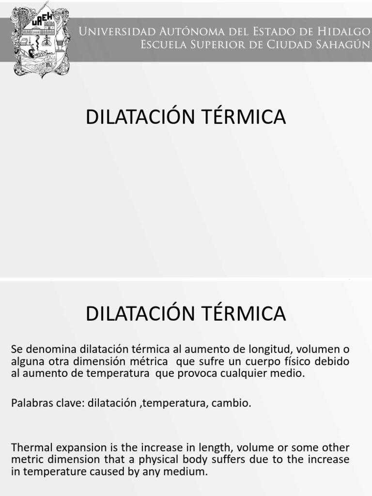 Se denomina dilatación térmica al aumento de longitud, volumen o