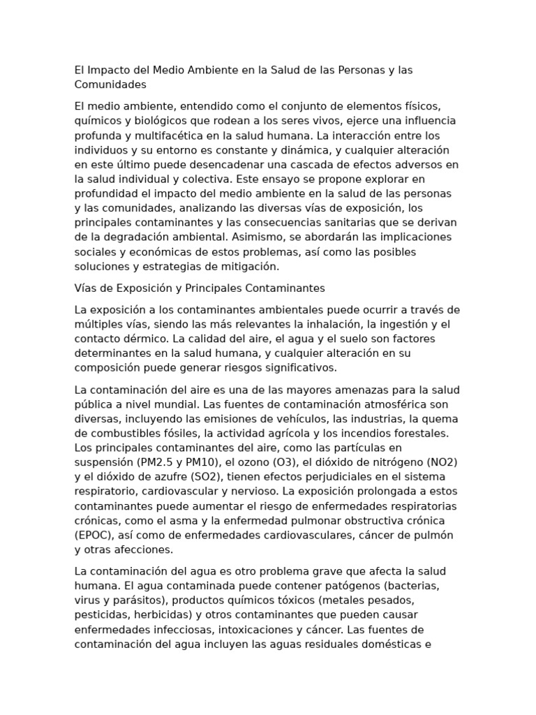 El Impacto del Medio Ambiente en la Salud de las Personas y las