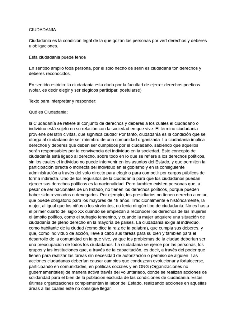 Ciudadania es la condición legal de la que gozan las personas por vert derechos y deberes
