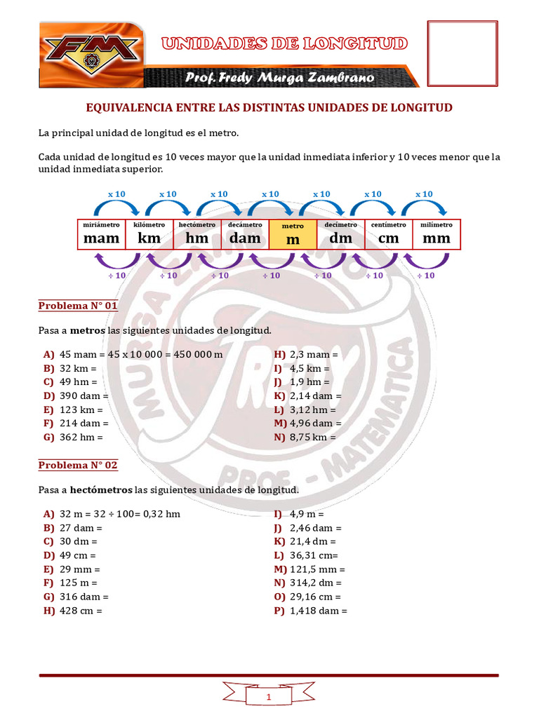 EQUIVALENCIA ENTRE LAS DISTINTAS UNIDADES DE LONGITUD