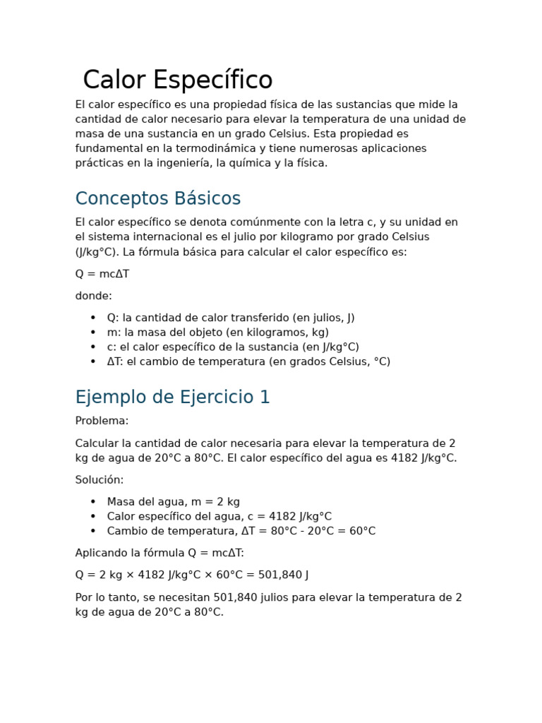 Estos ejercicios ilustran cómo aplicar la fórmula del calor específico para