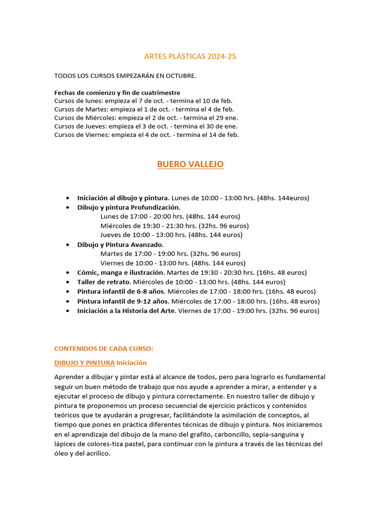 • Iniciación al dibujo y pintura. Lunes de 10:00 - 13:00 hrs. (48hs. 144euros)