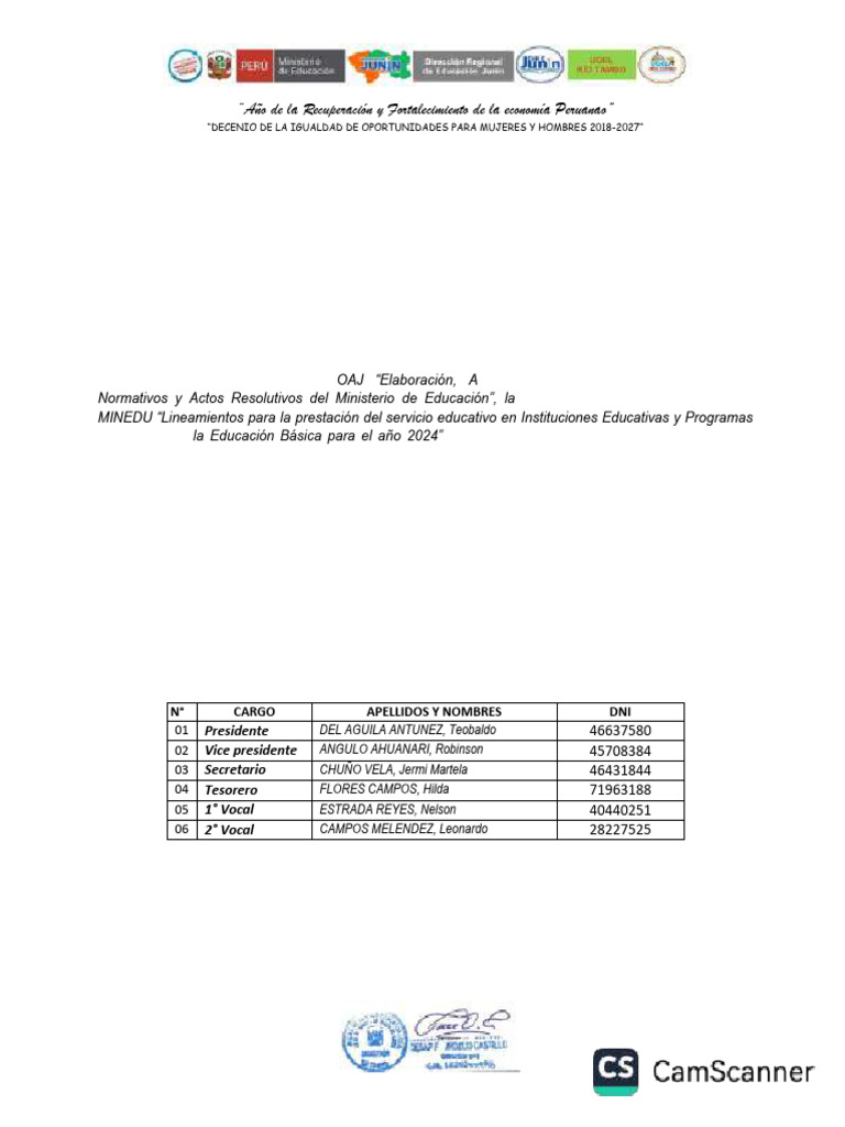 Art. 2°. - La vigencia de la Junta Directiva de APAFA es a partir del mes de enero del 2024 hasta el