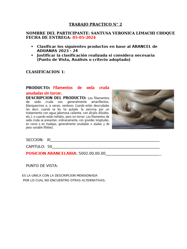 POSICION ARANCELARIA: 5002.00.00.00