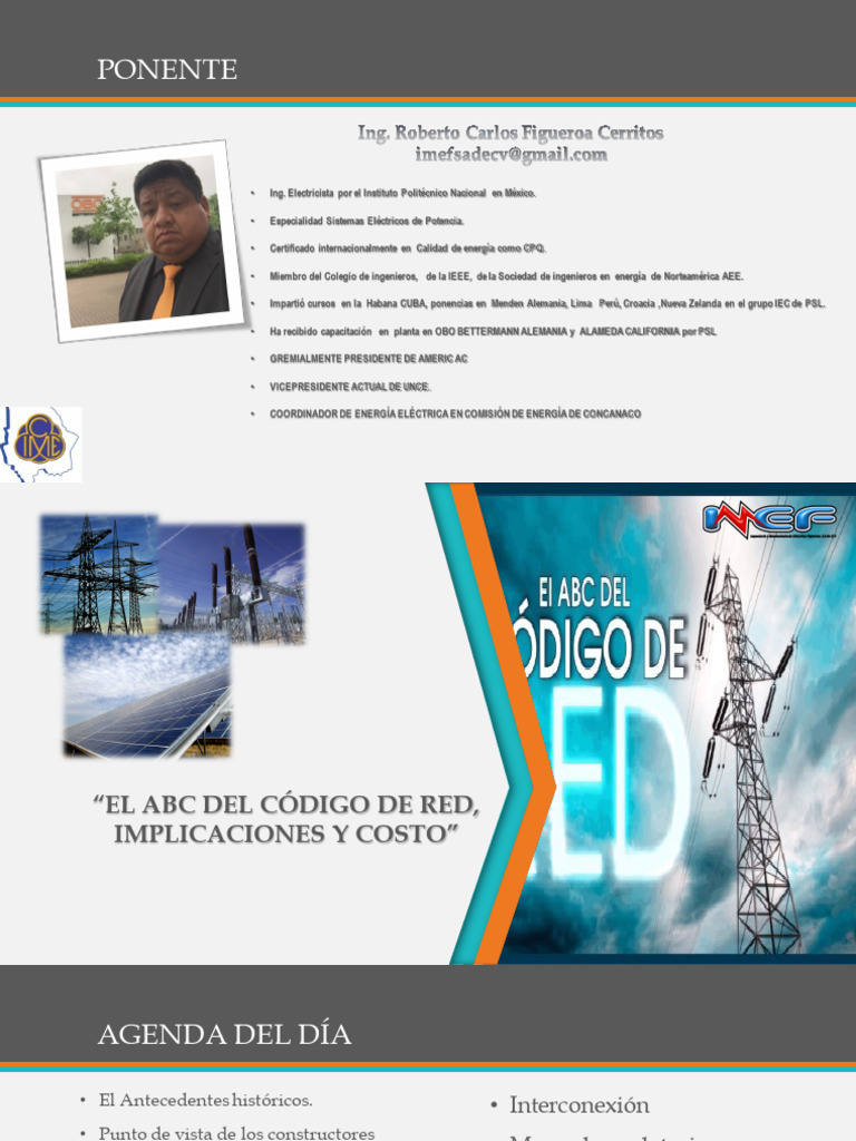• Miembro del Colegio de ingenieros, de la IEEE, de la Sociedad de ingenieros en energía de Norteamérica AEE.