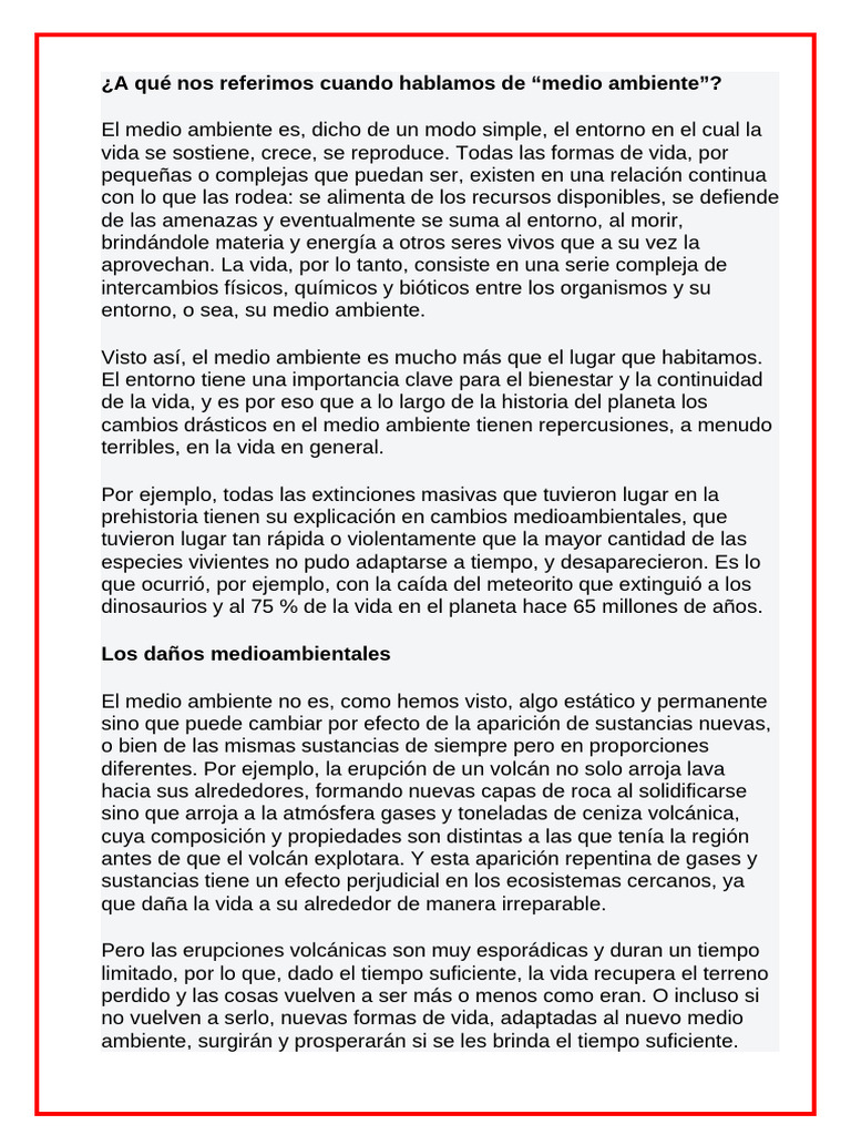 entorno, o sea, su medio ambiente.