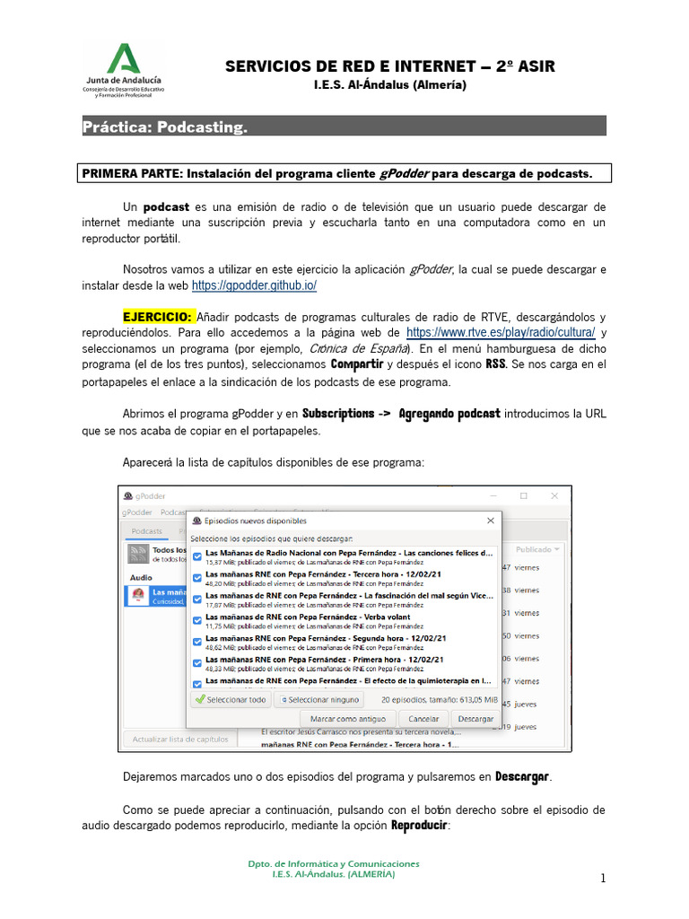 EJERCICIO: Añadir podcasts de programas culturales de radio de RTVE, descargándolos y