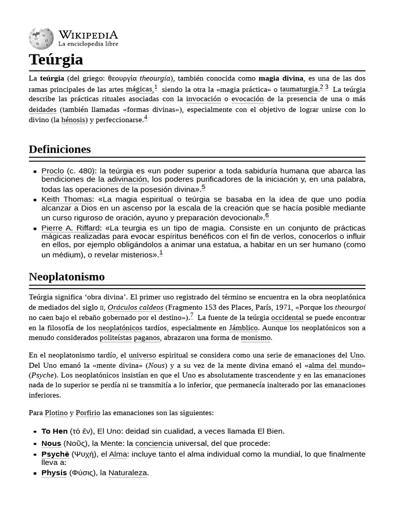 ramas principales de las artes mágicas,1 siendo la otra la «magia práctica» o taumaturgia.2 3 La teúrgia