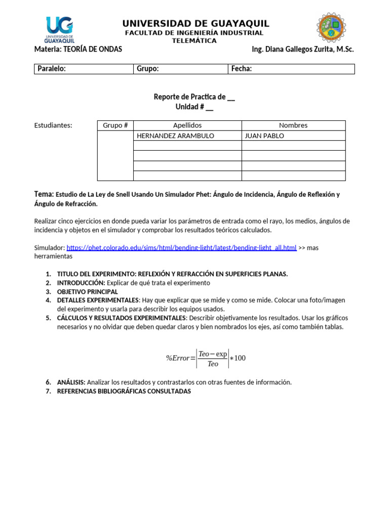 1. TITULO DEL EXPERIMENTO: REFLEXIÓN Y REFRACCIÓN EN SUPERFICIES PLANAS.