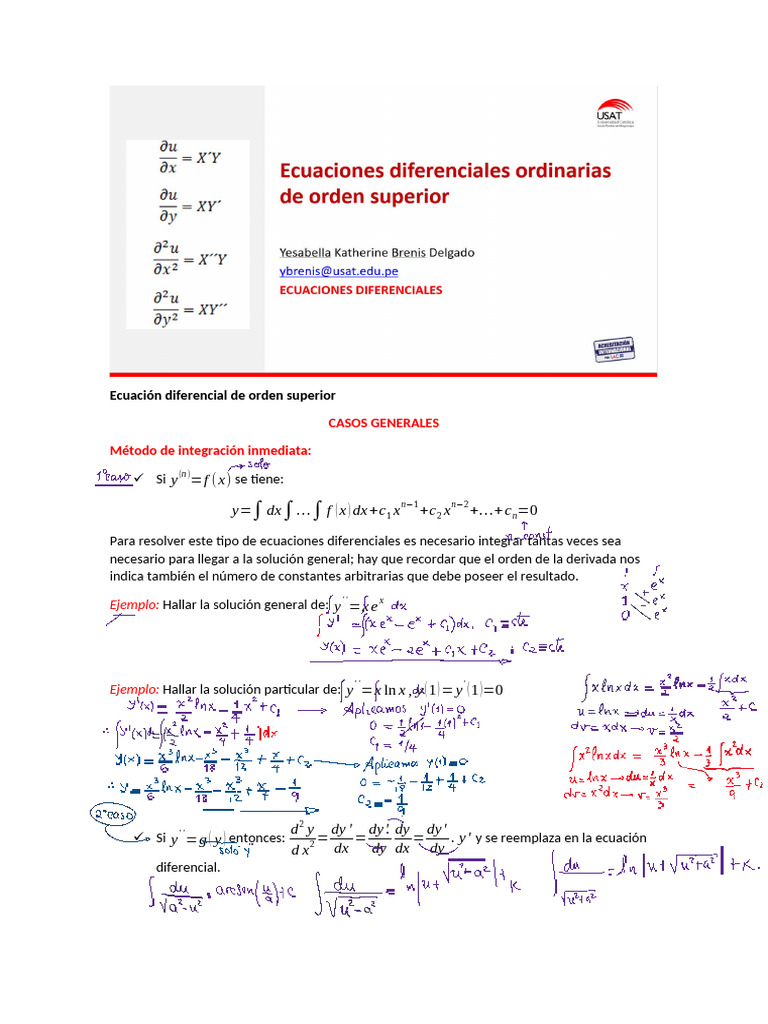 necesario para llegar a la solución general; hay que recordar que el orden de la derivada nos