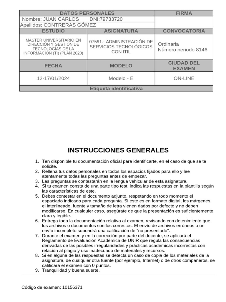 Código de examen: 10156371