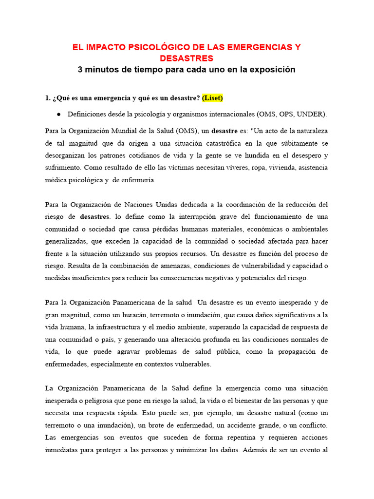 1. ¿Qué es una emergencia y qué es un desastre? (Liset)