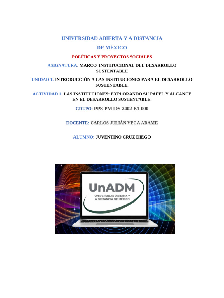 UNADM (2024). Unidad 1. Introducción a las Instituciones para el Desarrollo Sustentable.